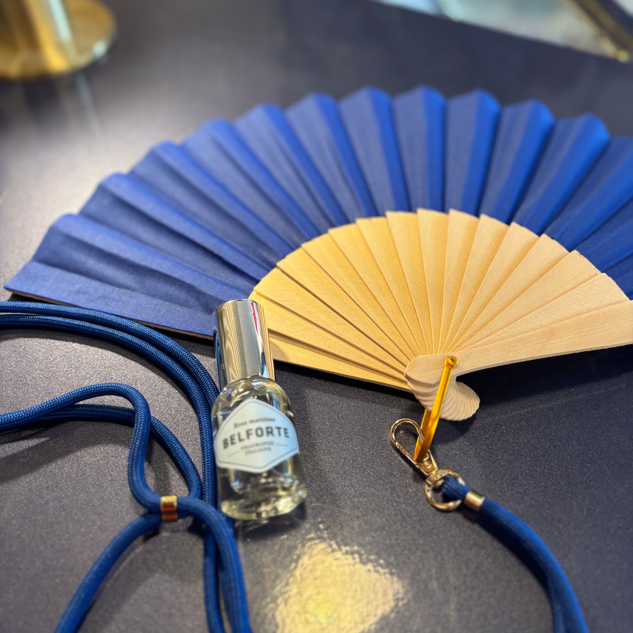 Ventaglio con boccetta di profumo da spruzzare sul ventaglio stesso per spargere profumo ad ogni sventagliata!